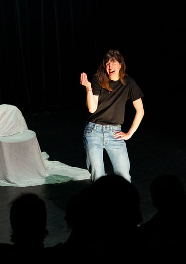 L’un de nos projets phares est un seule-en-scène qui traite des troubles psychiques et de la santé mentale. À travers ce spectacle, nous souhaitons sensibiliser un large public à ces enjeux encore trop souvent tabous. Il raconte l’histoire d’une femme qui, au fil de son parcours, s’oriente vers le travail social et accompagne des personnes souffrant de troubles psychiques.